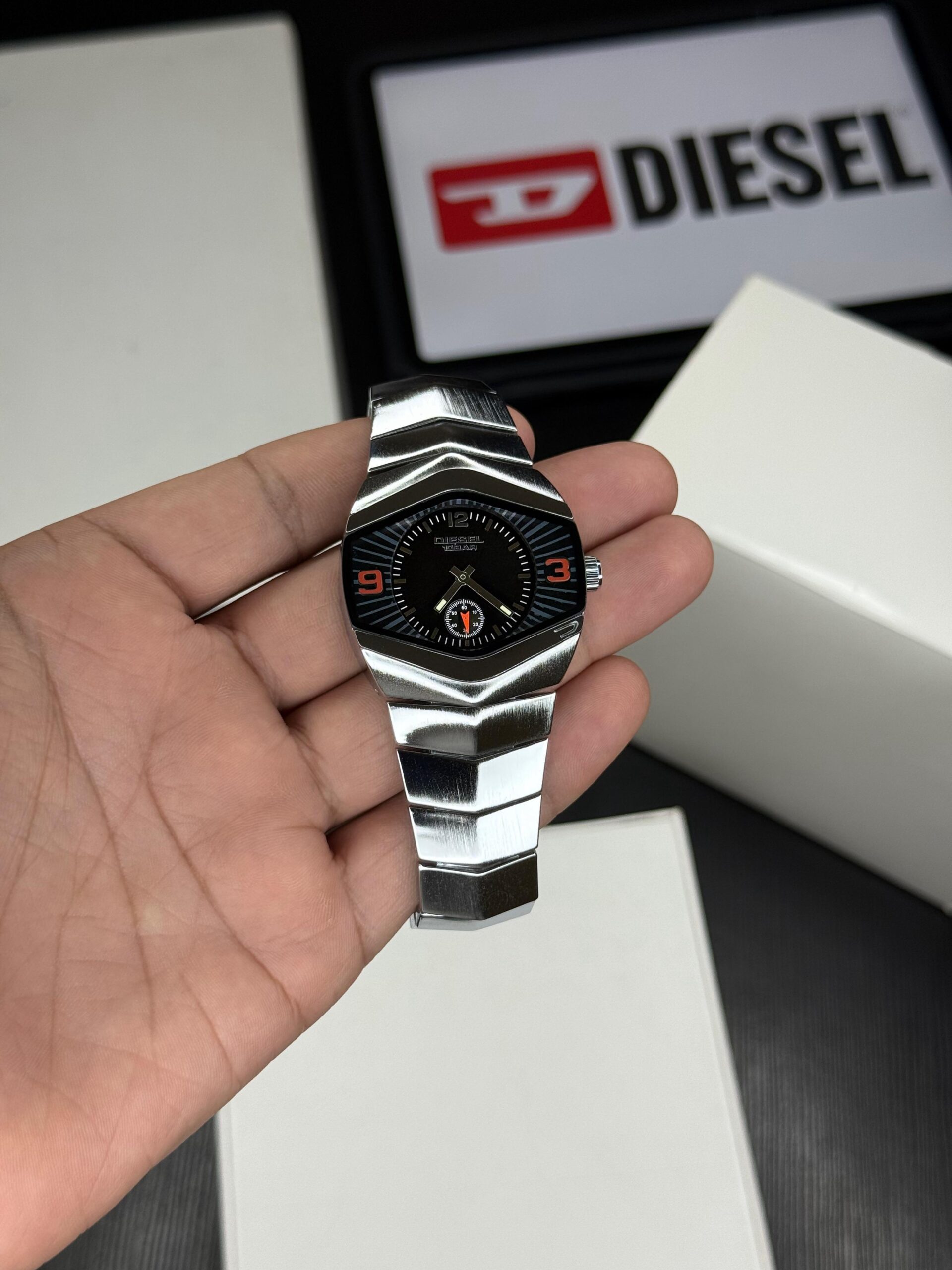 Bold, edgy, and unmistakably modern — the Diesel Rock Watch stands out with its unique stainless steel angular case and bracelet design. Built for men who prefer statement accessories, this timepiece combines industrial styling with reliable performance.